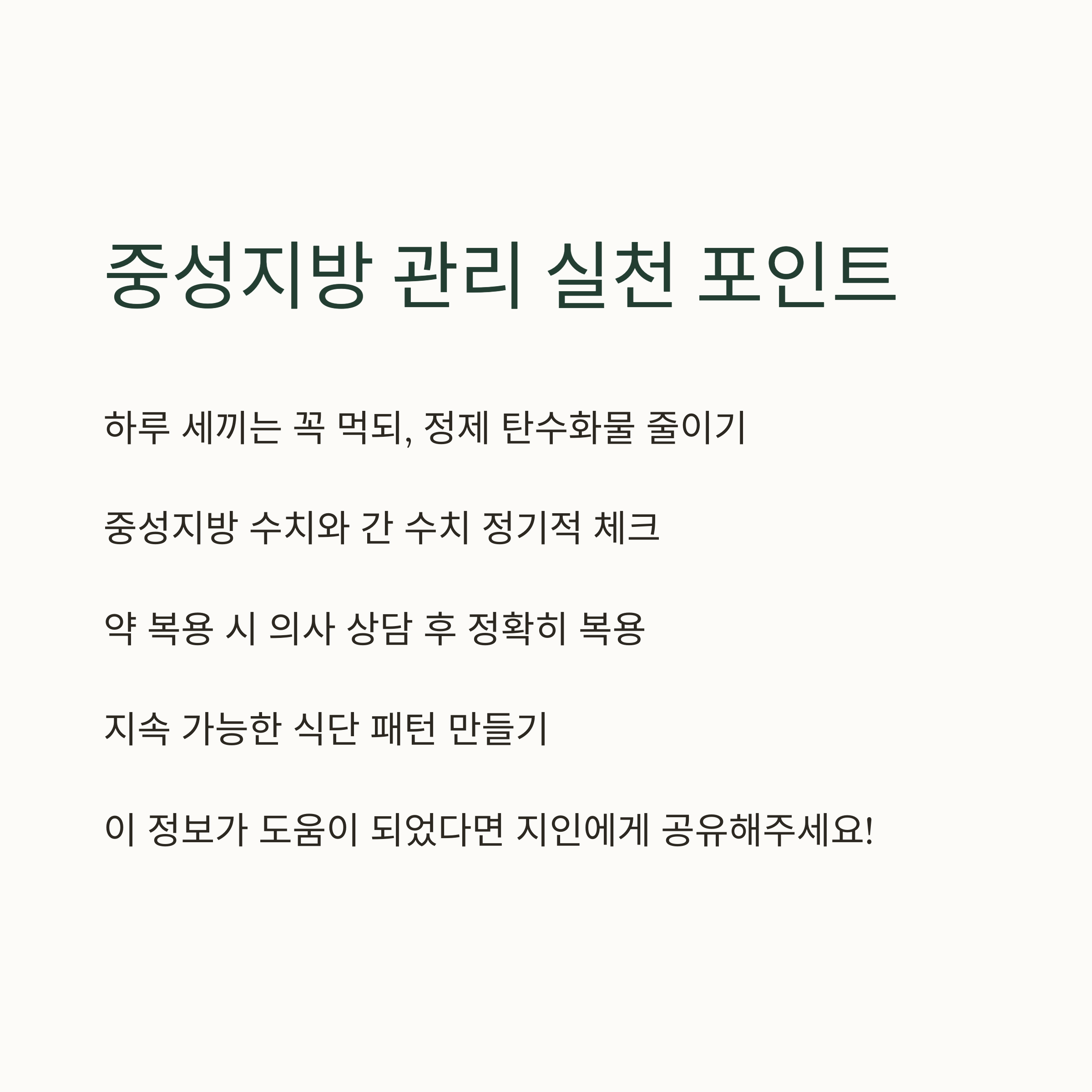 👉 중성지방 수치를 식단으로 줄이는 방법이 궁금하다면, 중성지방 낮추는 식단표 보러가기