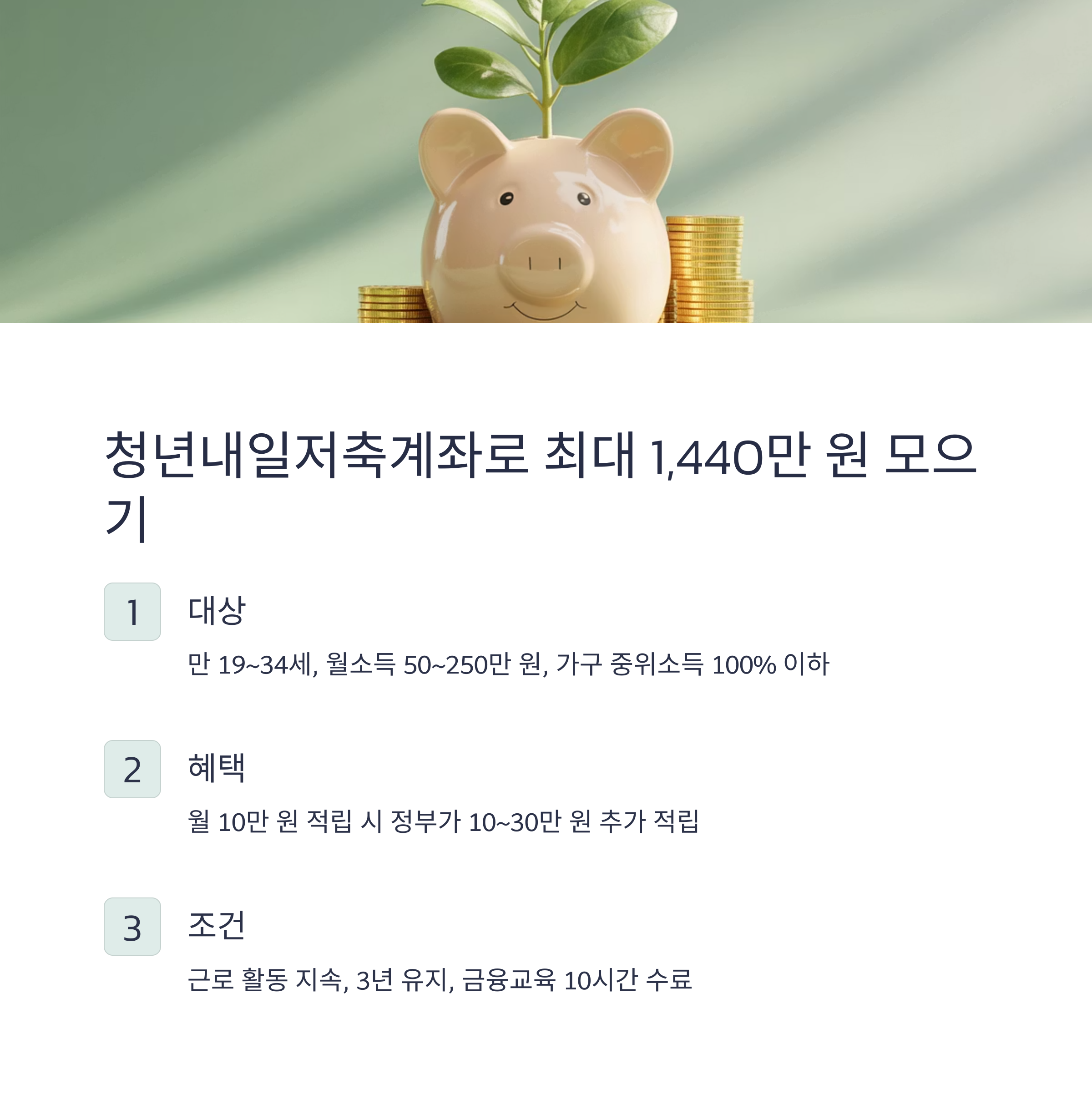 ✔ 청년내일저축계좌: 저소득 청년 위한 적립형 지원