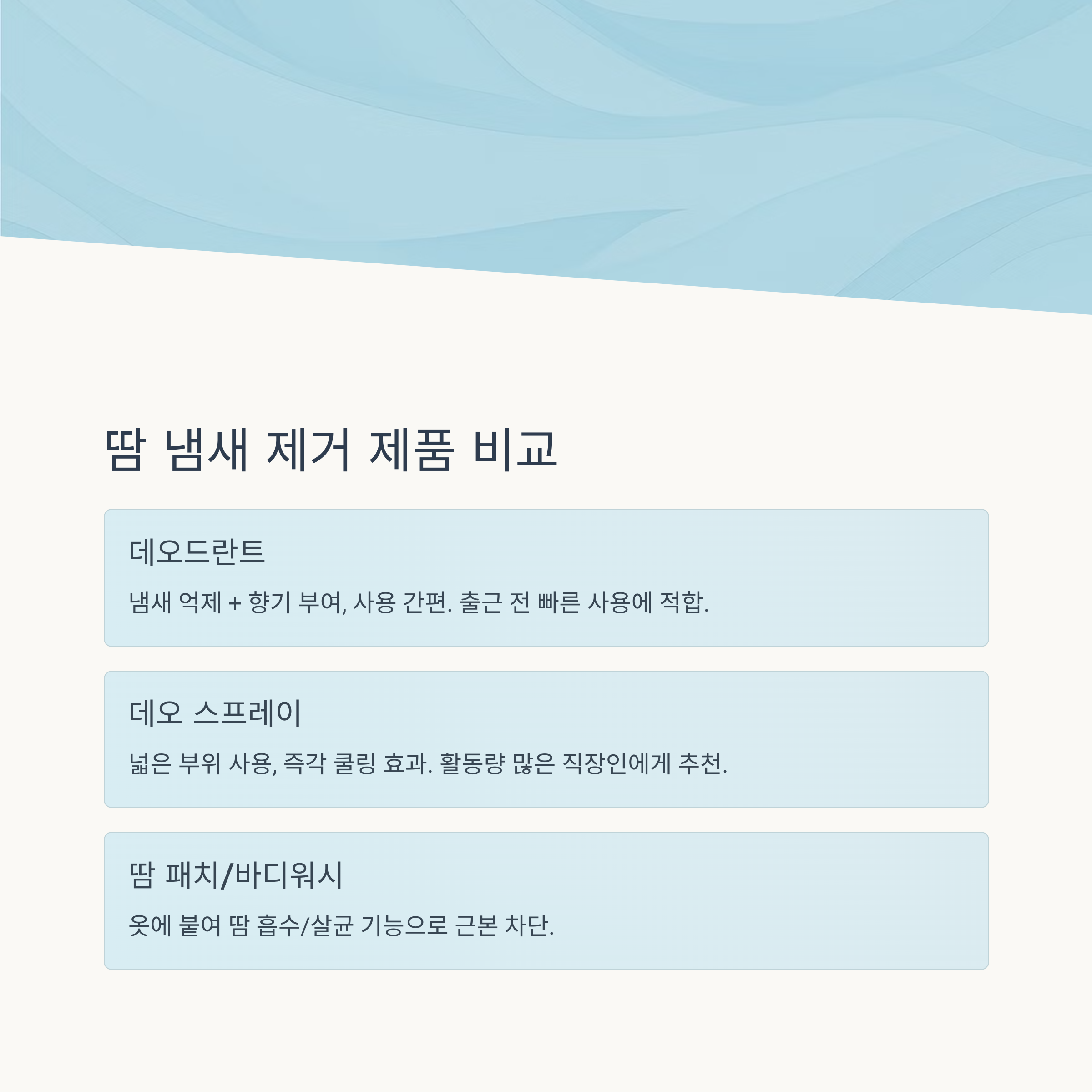 2. 땀 냄새 제거 꿀템 유형별 비교