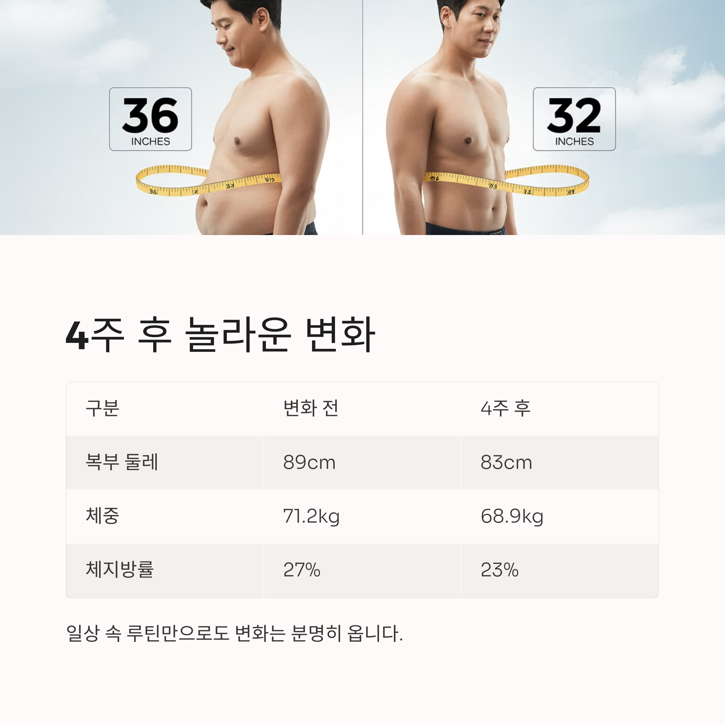 | 구분 | 변화 전 | 4주 후 |