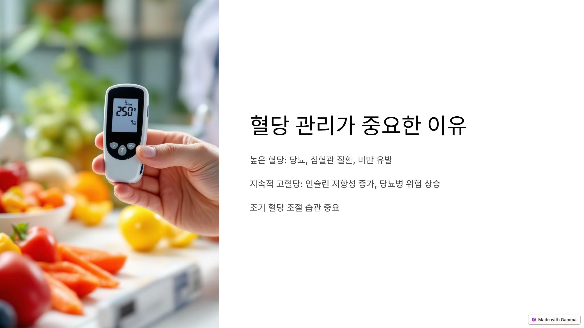 혈당이 높으면 당뇨뿐만 아니라 심혈관 질환, 비만 등 다양한 건강 문제를 유발할 수 있어요. 혈당이 지속적으로 높아지면 몸의 인슐린 저항성이 증가하면서 당뇨병 위험이 커지죠. 따라서 미리미리 혈당을 조절하는 습관을 기르는 것이 중요해요!