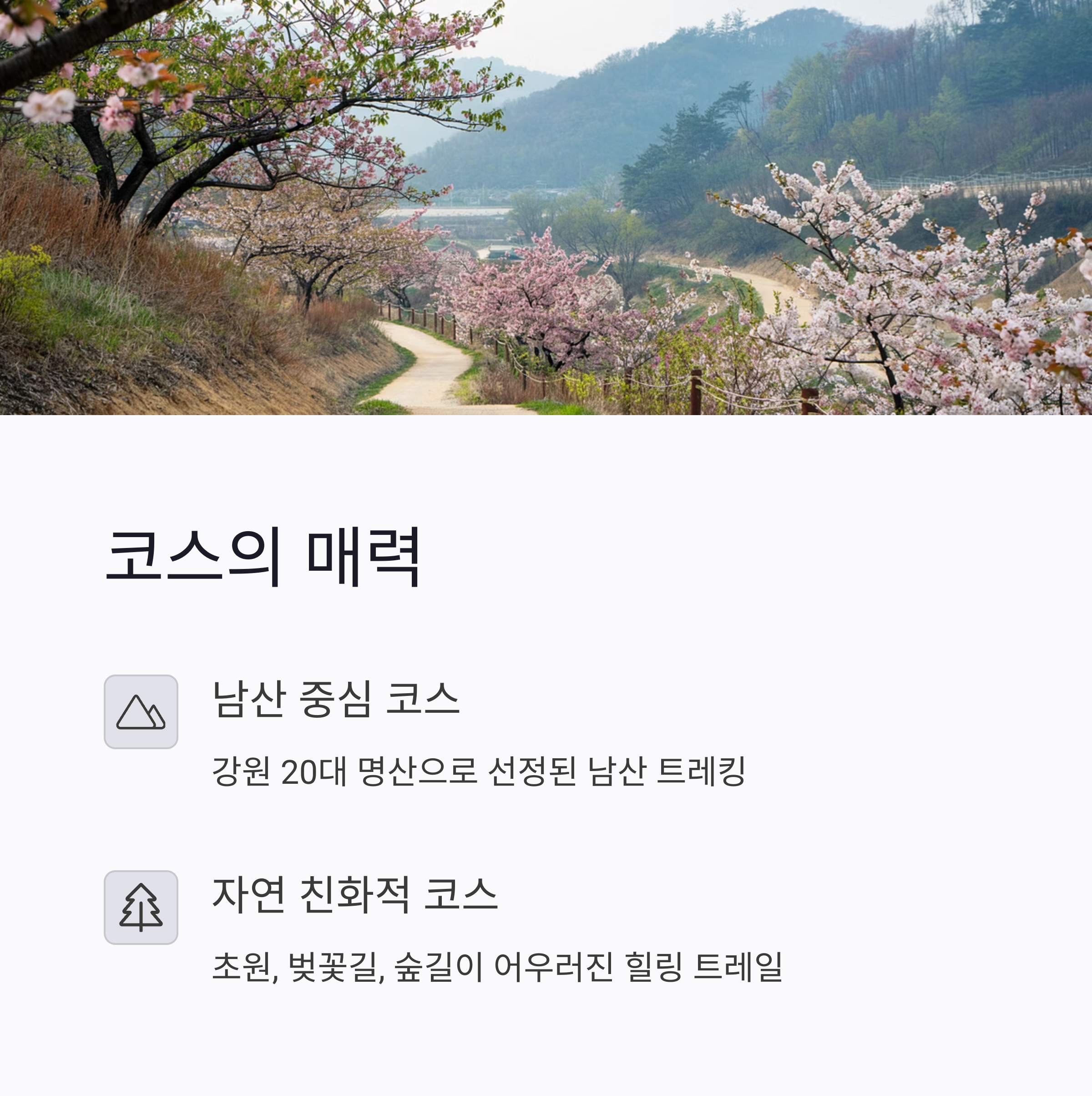 코스의 매력 - 숲길, 벚꽃길, 남산 트레킹 완벽 분석