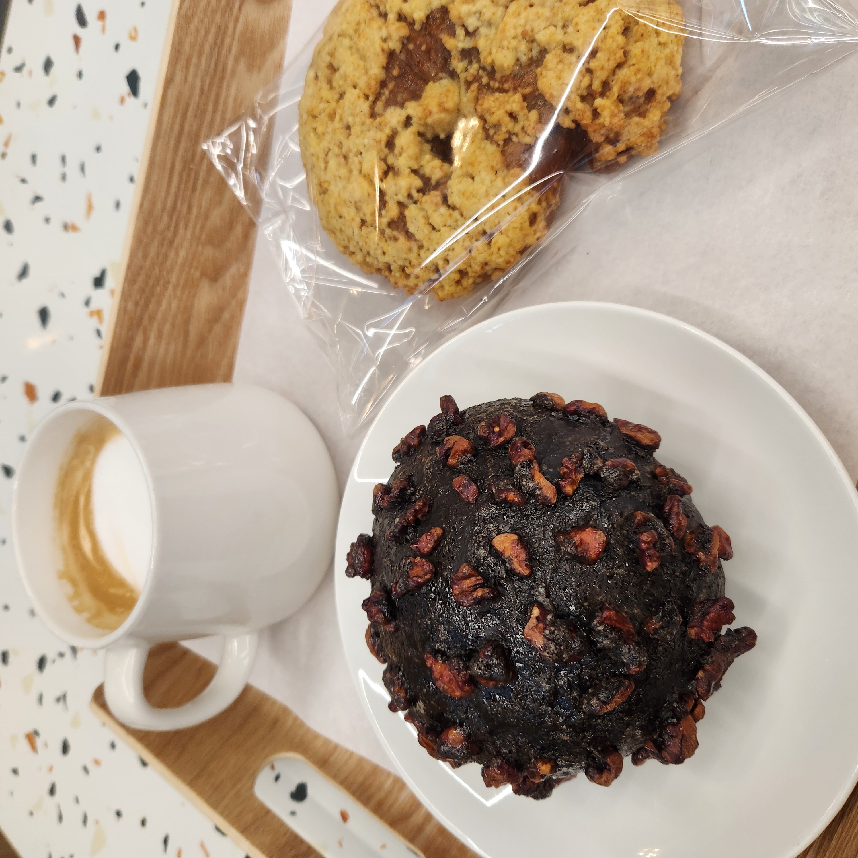 많은 빵들 중에 저의 픽은 현무암쌀빵, 라떼, 그리고 모카크림치즈찰빵