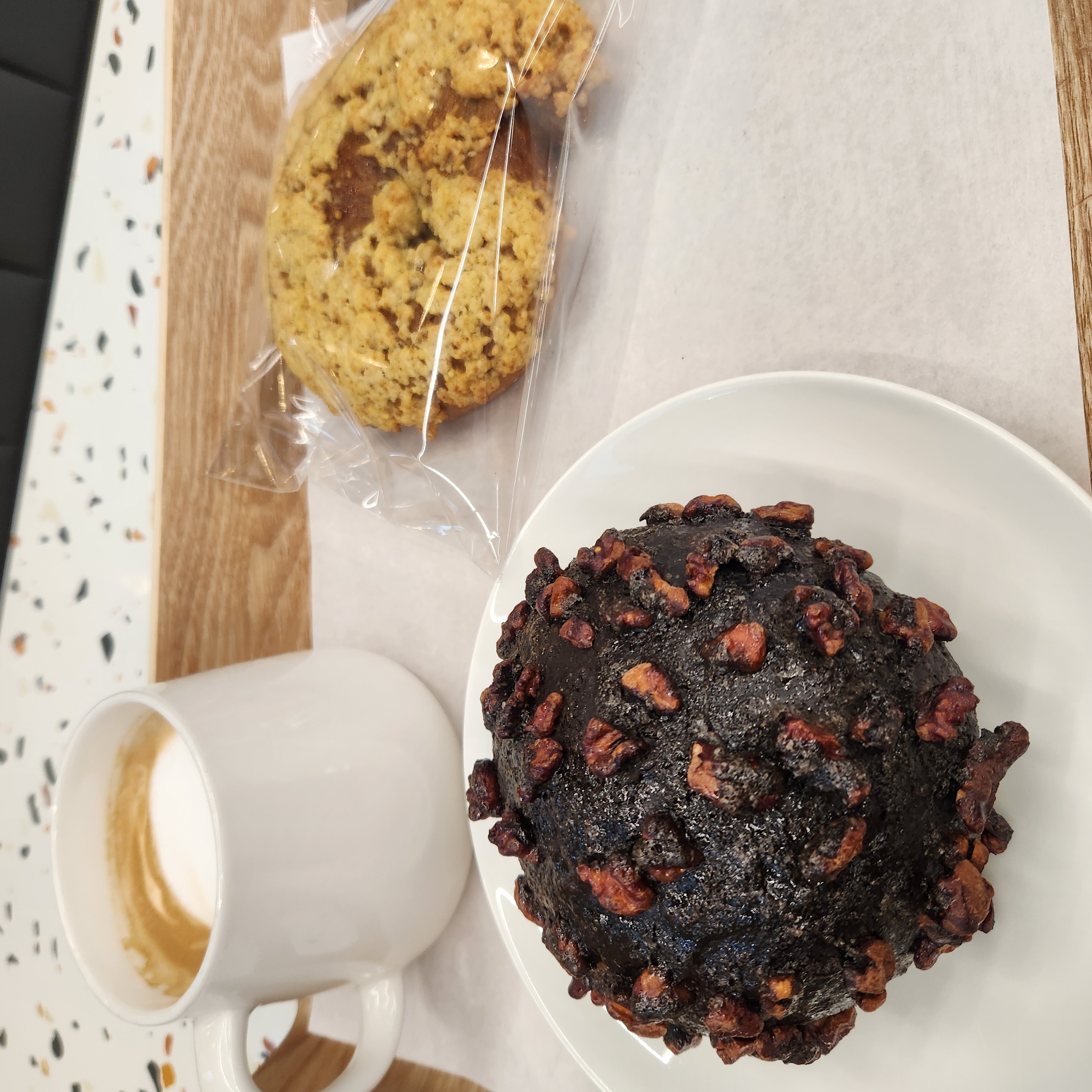 많은 빵들 중에 저의 픽은 현무암쌀빵, 라떼, 그리고 모카크림치즈찰빵
