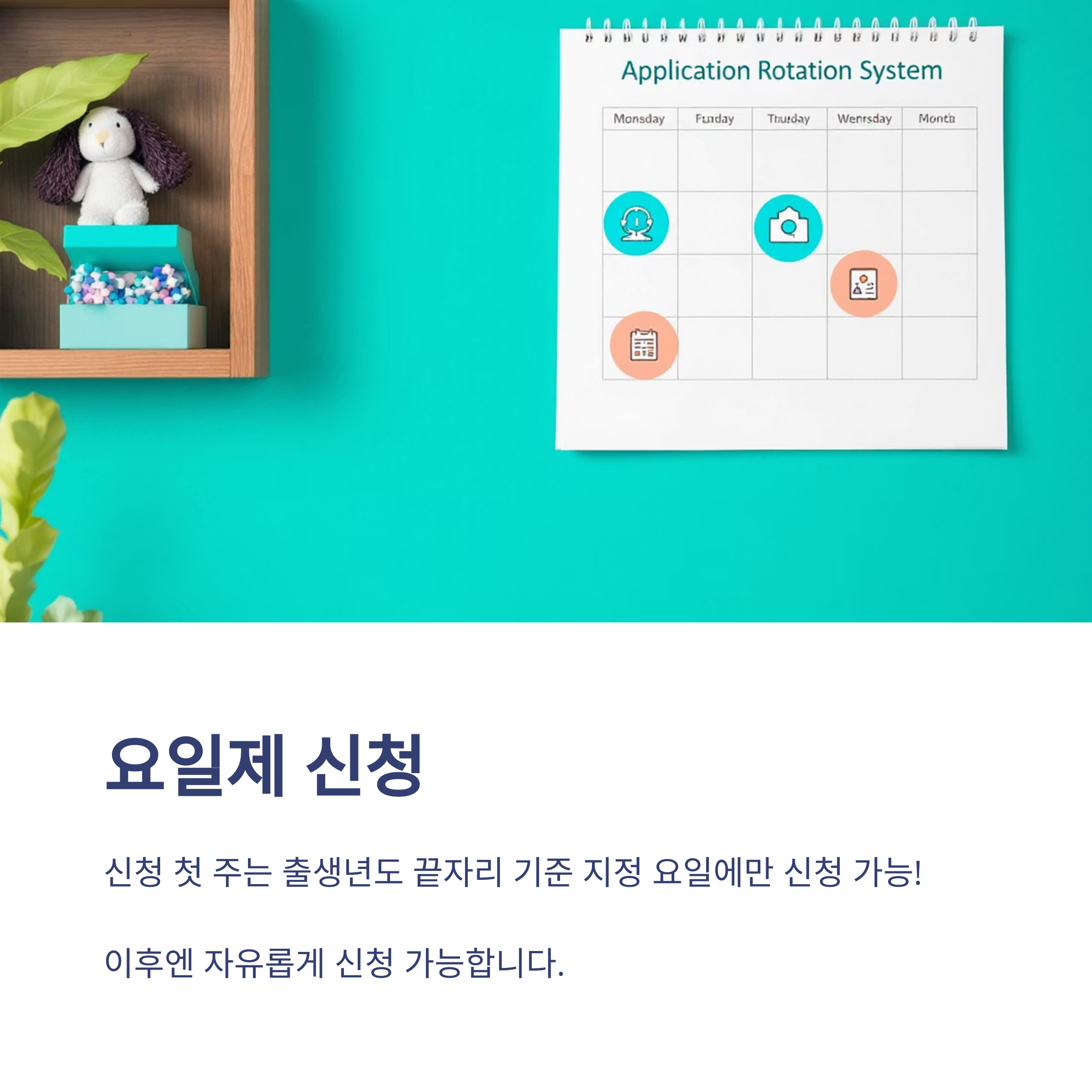 → 출생년도 끝자리 기준으로 지정 요일에만 신청 가능하며, 이후엔 자유 신청!
