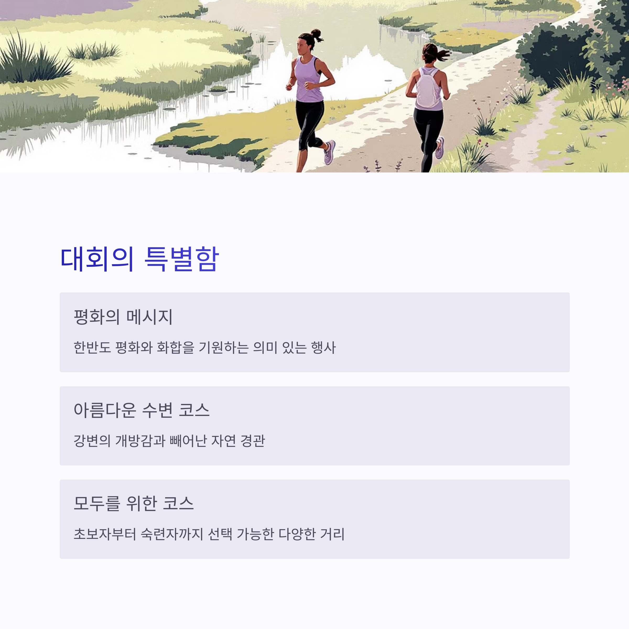 이 대회는 단순한 러닝 행사를 넘어, 한반도의 평화와 화합을 기원하는 의미 있는 행사로 자리 잡았습니다.