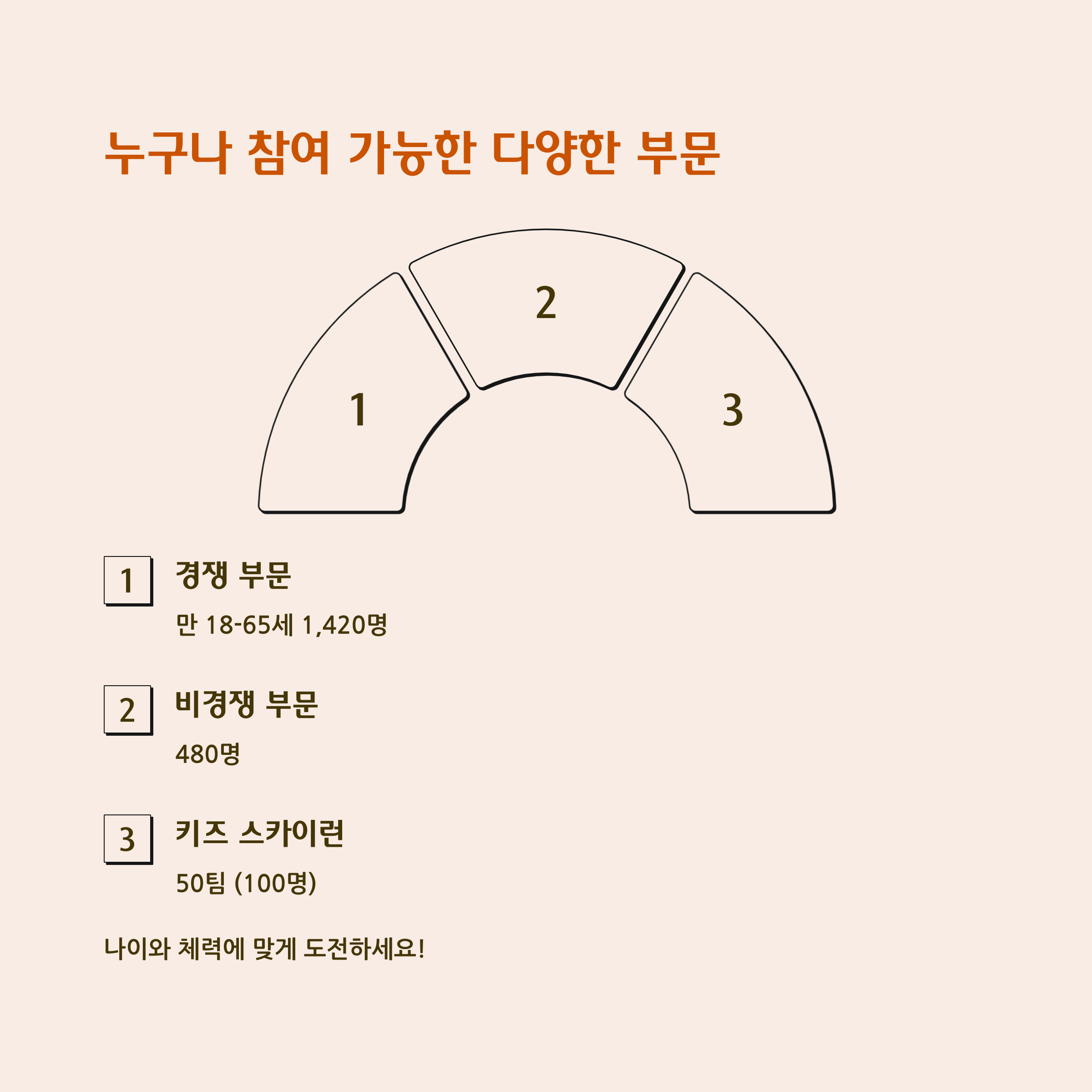 참가 부문 경쟁, 비경쟁, 키즈 팀 총 2,000명 선착순
