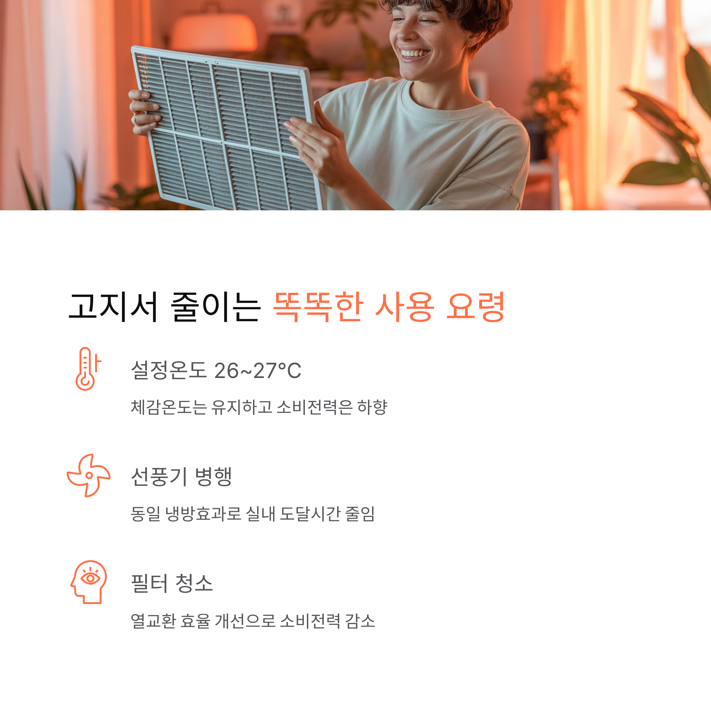 - 절전 루틴 적용: 냉방 온도·필터·실외기·순환팬·제습 루틴 바로 설정.