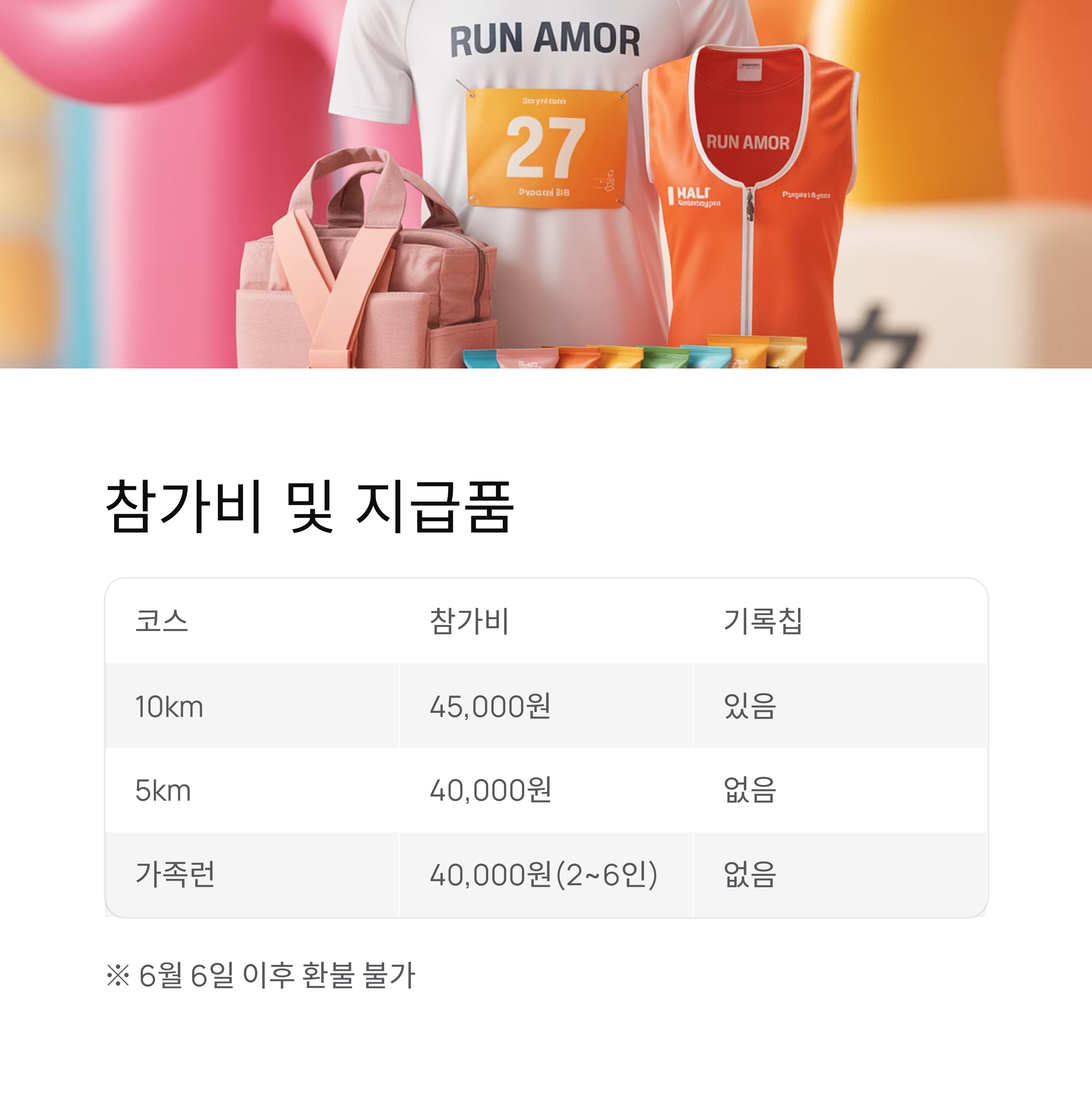 - 코스: 10km / 5km / 가족런(5km, 가족 단위 참가 전용)