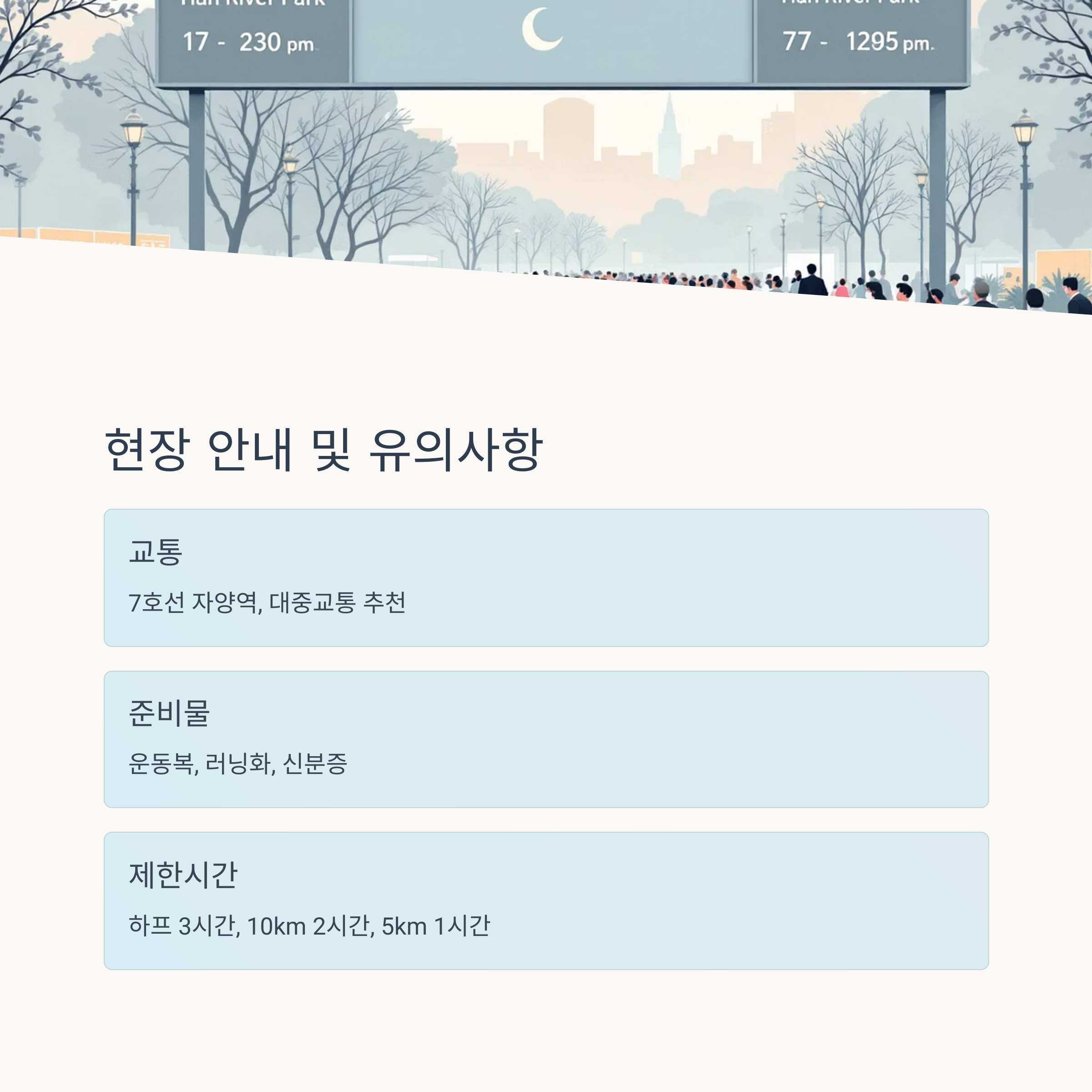 - 준비물: 운동복, 러닝화, 신분증(현장 번호표 수령 시 확인)