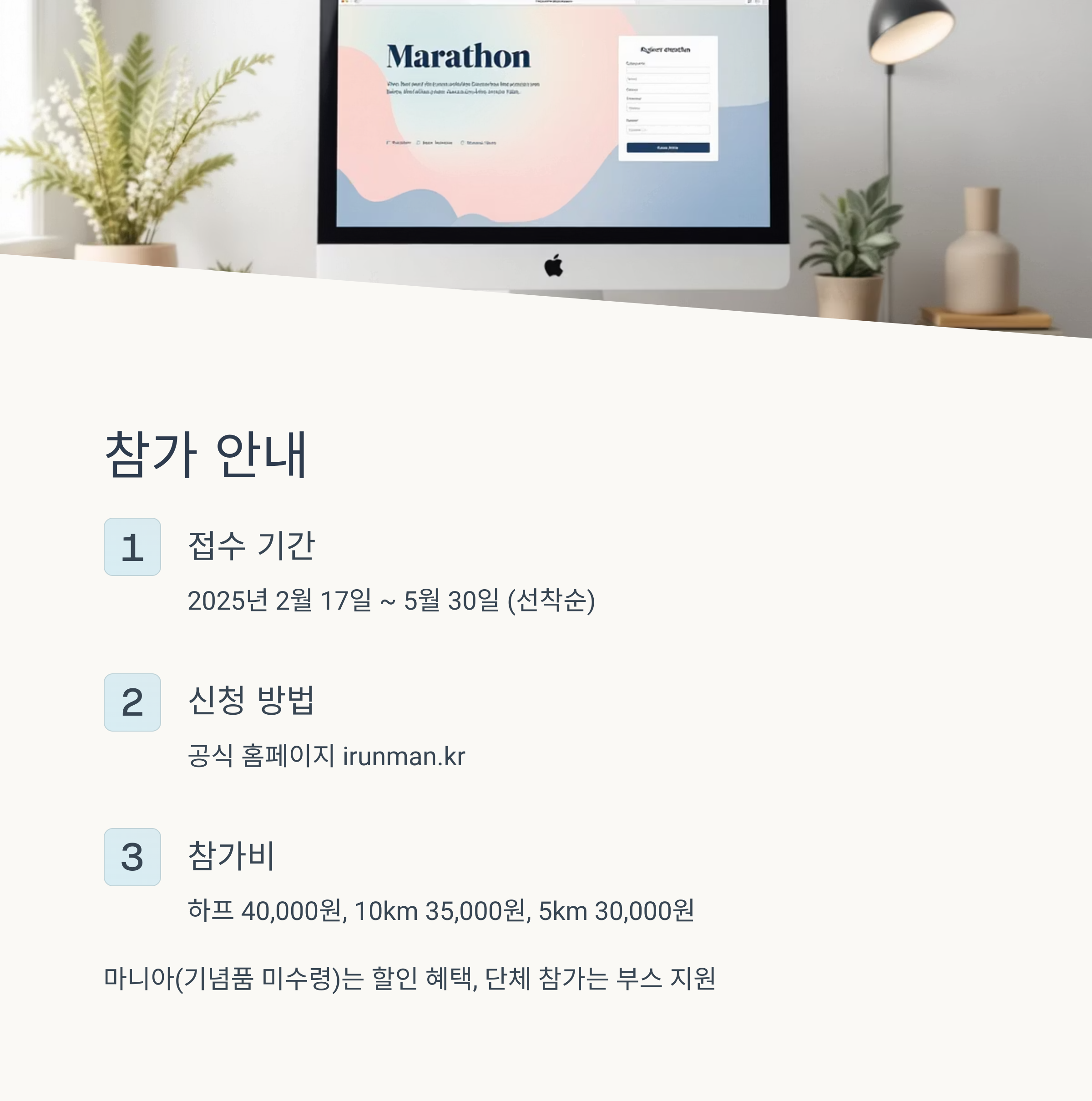 - 다양한 기념품과 부대행사로 소풍 같은 마라톤을 즐기고 싶은 분