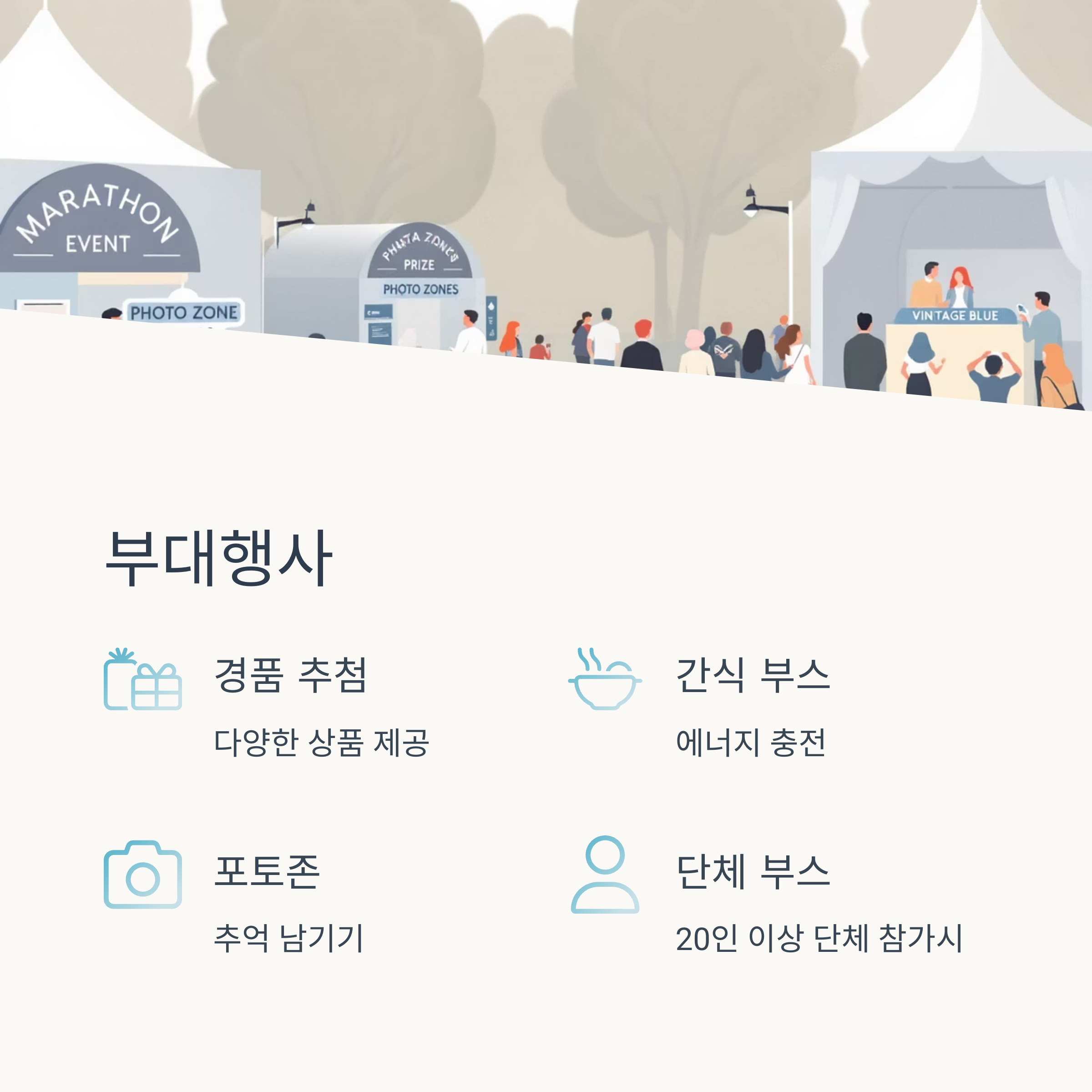 - 단체 부스(20인 이상 단체 참가 시 제공)