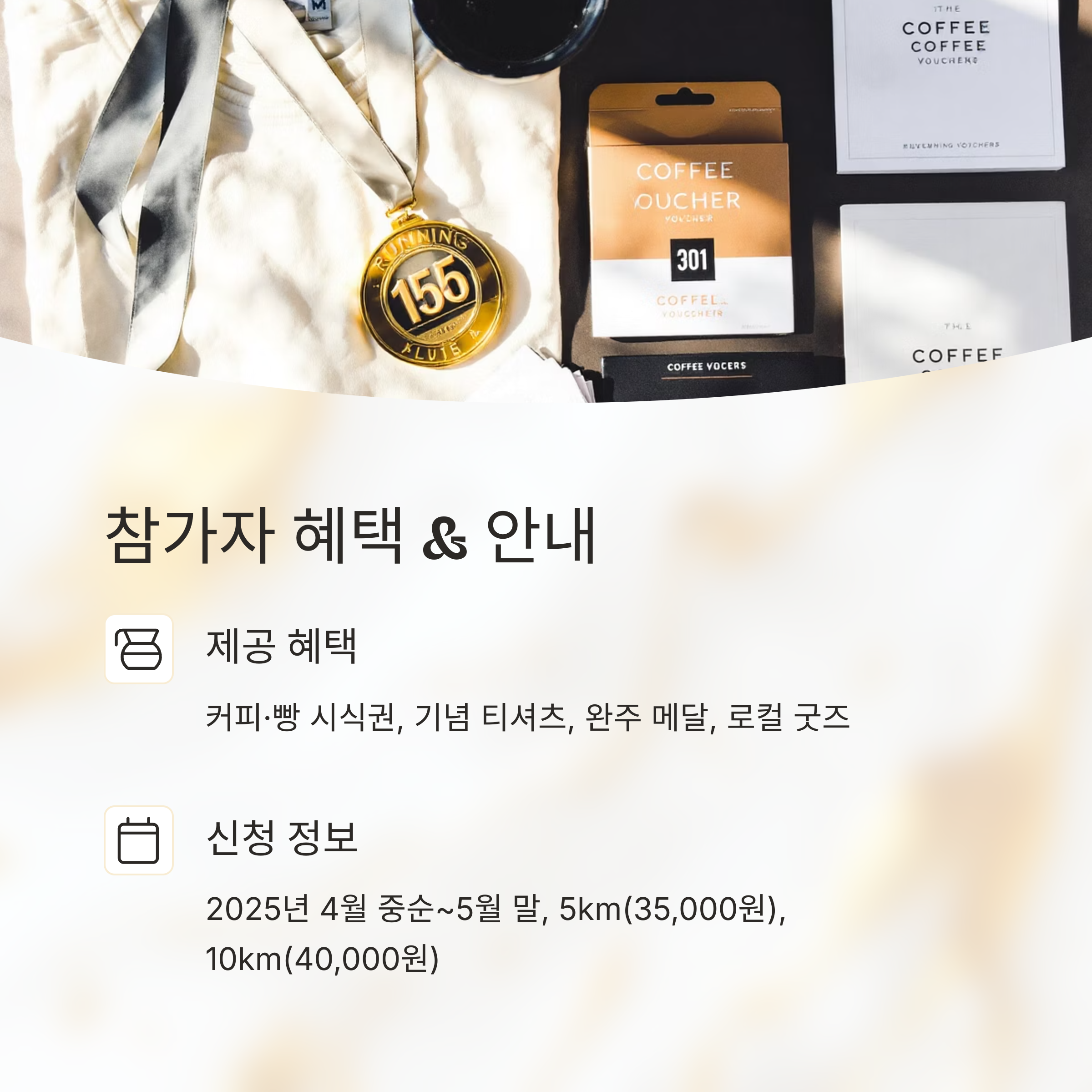 완주 후 따뜻한 커피와 빵을 즐기는 브런치 마라톤 콘셉트로,