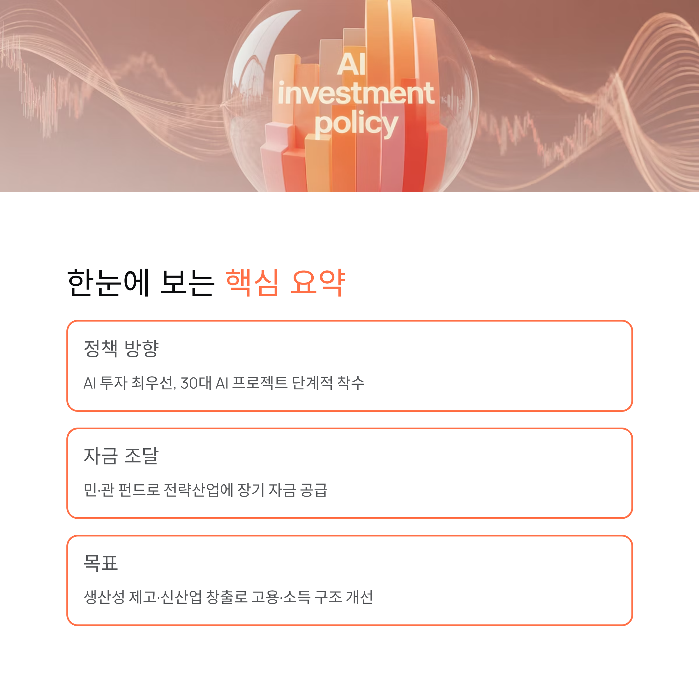 AI 전환은 먼 미래 이야기가 아닙니다. 업무·가게·가계의 작은 단위부터 바꾸는 사람이 먼저 결과를 만납니다. 이번 정책의 핵심은 “현장의 생산성을 높이는 것”이고, 우리는 작은 자동화부터 시작하면 됩니다. 오늘 30분, 내 반복 업무 한 가지를 AI와 나눠 보세요. 다음 달 보고서에 적을 수치가 생길 겁니다.