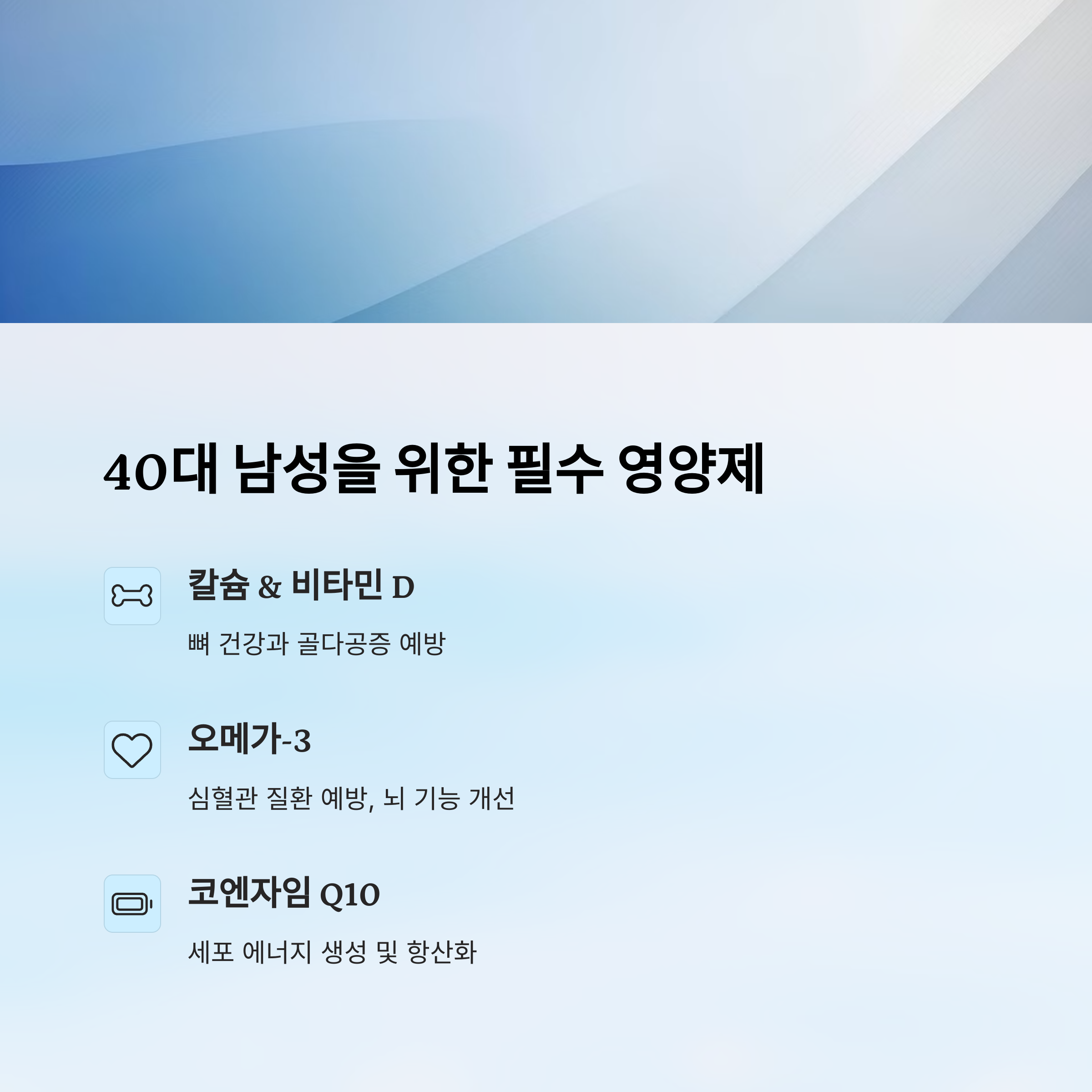 몸이 예전 같지 않다는 걸 가장 먼저 체감하게 되는 시기, 바로 40대입니다. 바쁜 일상 속에서 피로는 쉽게 쌓이고, 체력은 예전만 못하다고 느끼게 되죠. 이럴 때 건강을 지키기 위한 가장 실천적인 방법 중 하나가 바로 '영양제' 섭취예요.