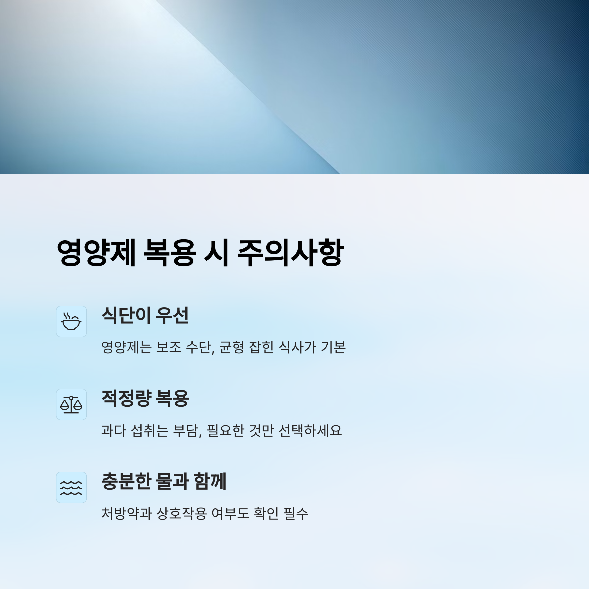 • 영양제는 어디까지나 보조적인 수단이에요. 식단이 먼저라는 걸 꼭 기억하세요.