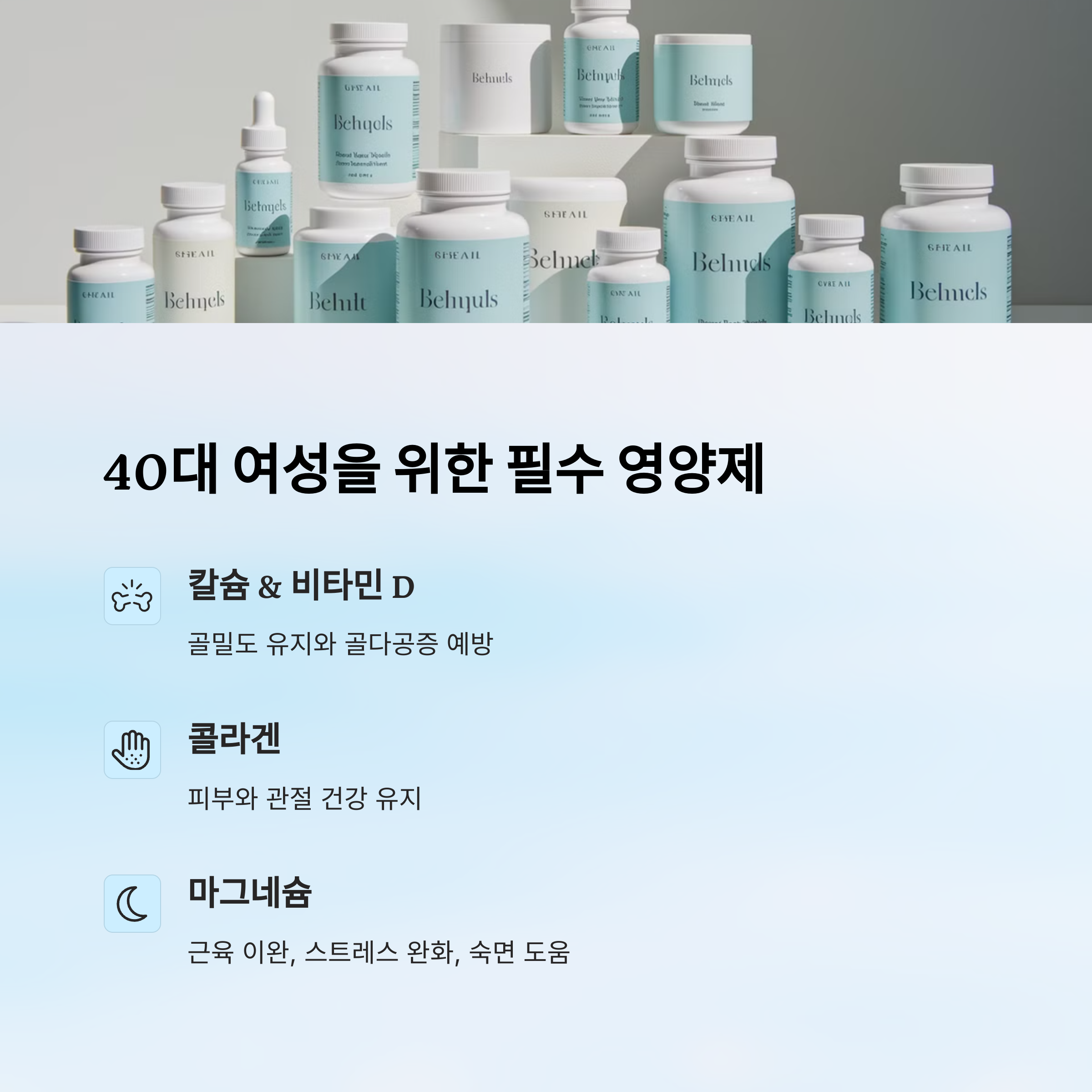 여성의 경우 40대부터는 호르몬 변화가 본격화되면서 피부, 뼈, 눈 건강, 그리고 감정 기복 관리까지 고려해야 해요. 이 시기에 필요한 영양제를 소개합니다.