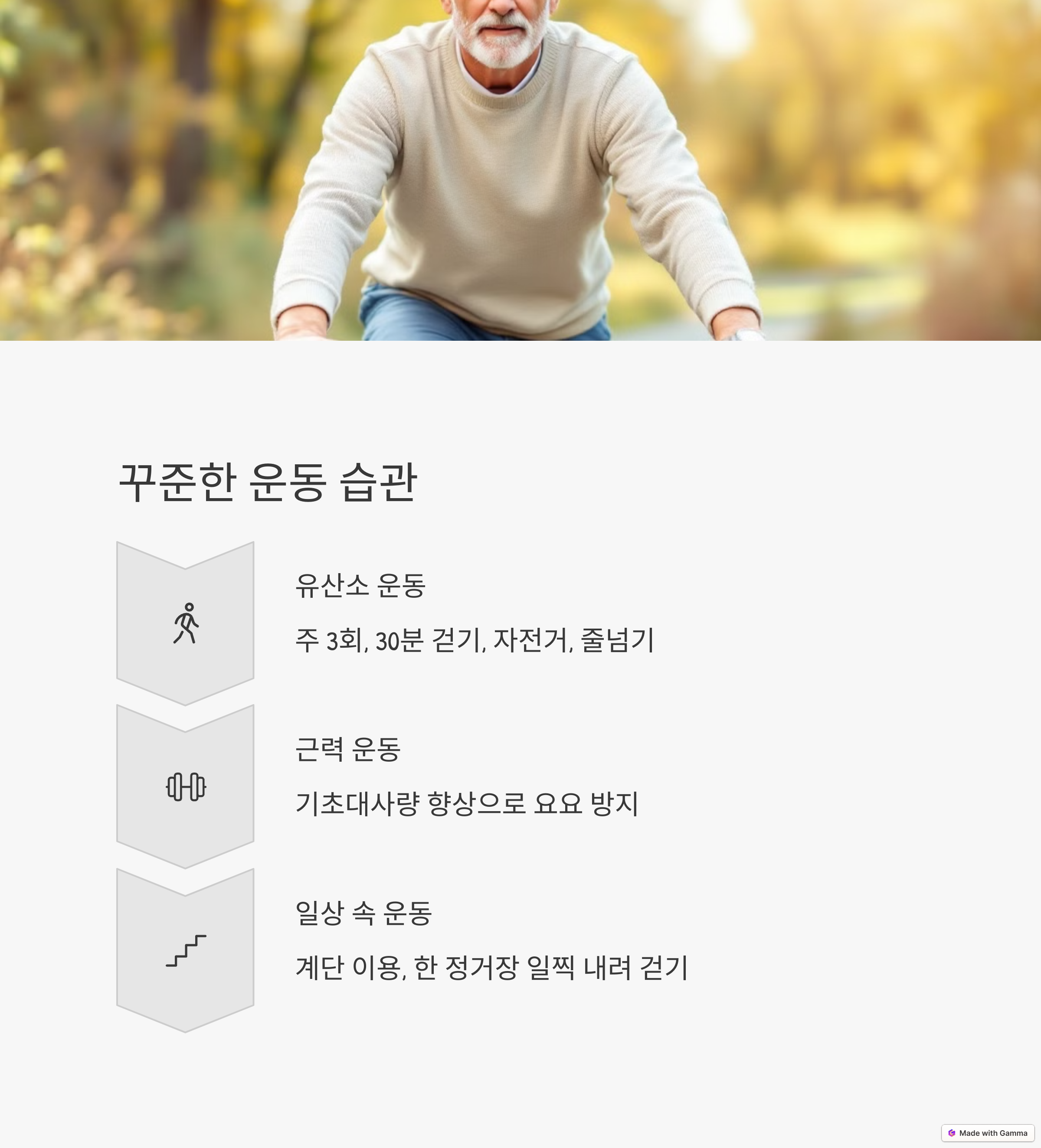 먼저 주 3회, 30분 유산소 운동부터! 걷기, 자전거, 줄넘기 등 가볍게 몸을 움직이기 시작했고,
