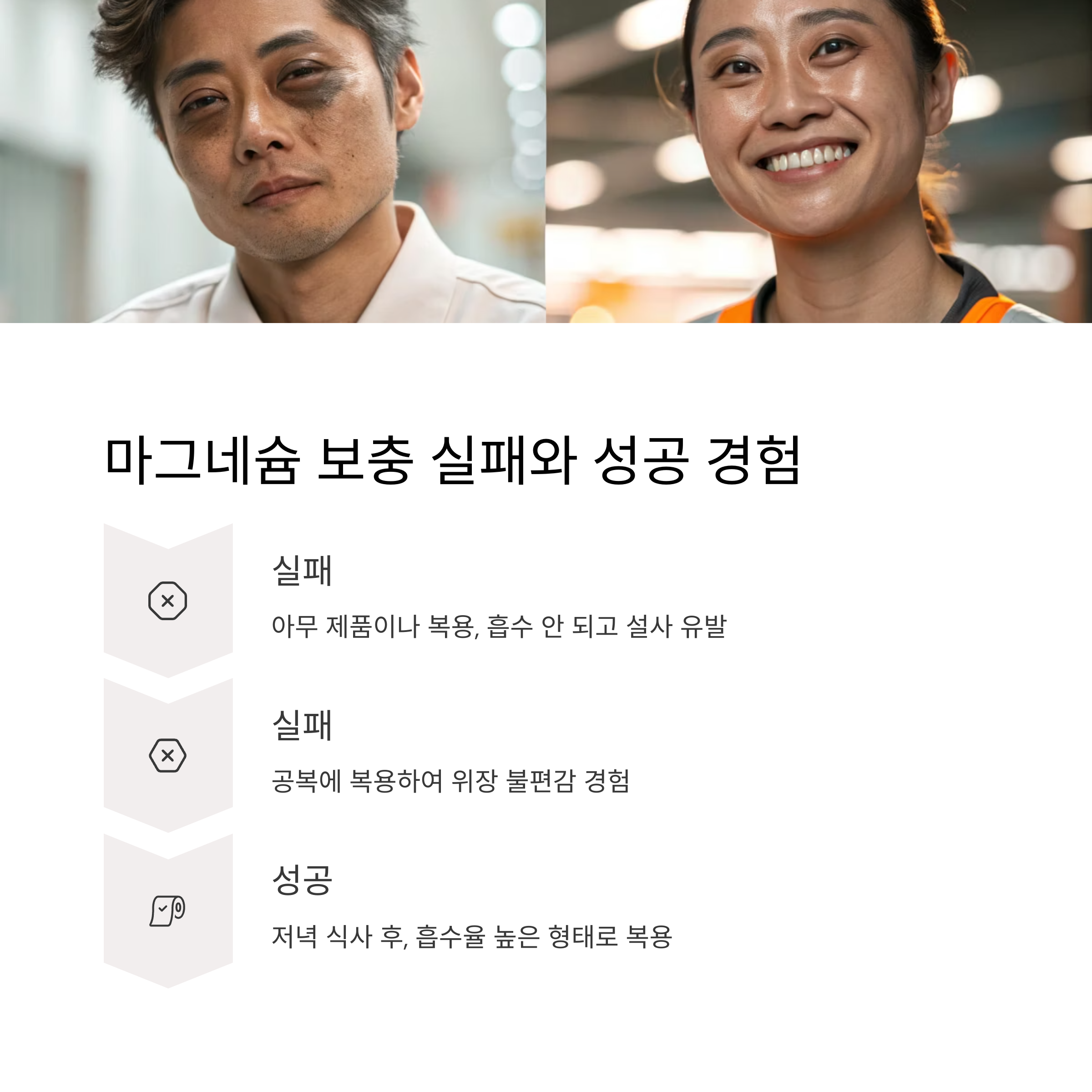 - ❌ 아무 제품이나 복용 → 흡수 안 되고 설사 유발