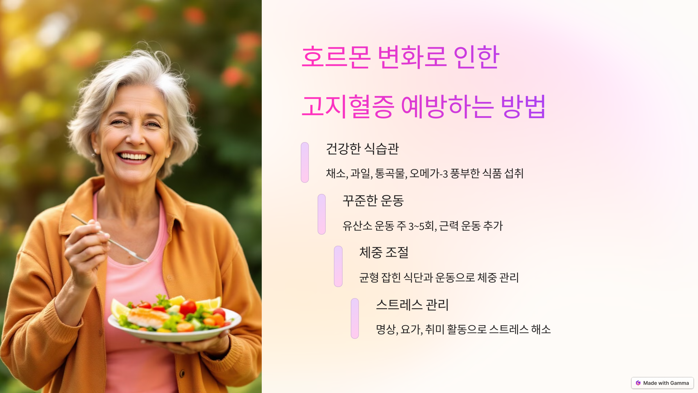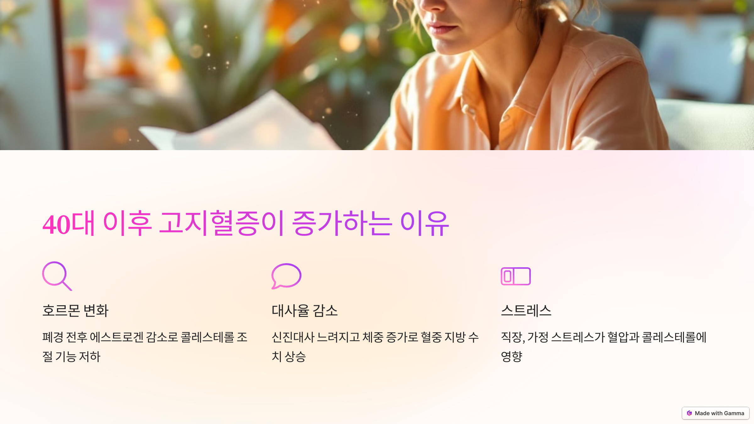 오늘은 40대 여성의 호르몬 변화와 고지혈증의 관계, 그리고 예방 방법에 대해 알아보겠습니다.