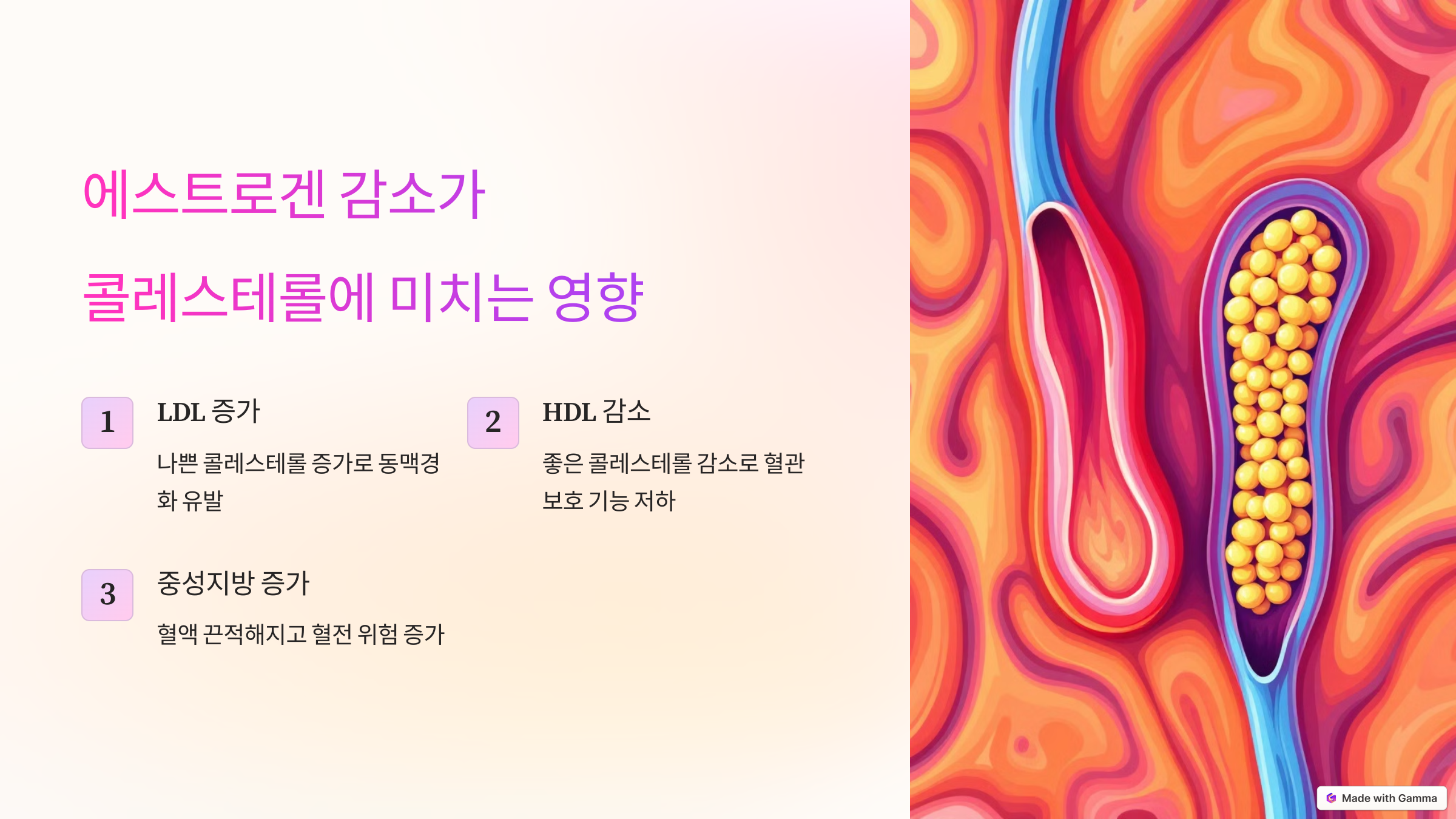 - 에스트로겐 감소가 콜레스테롤에 미치는 영향