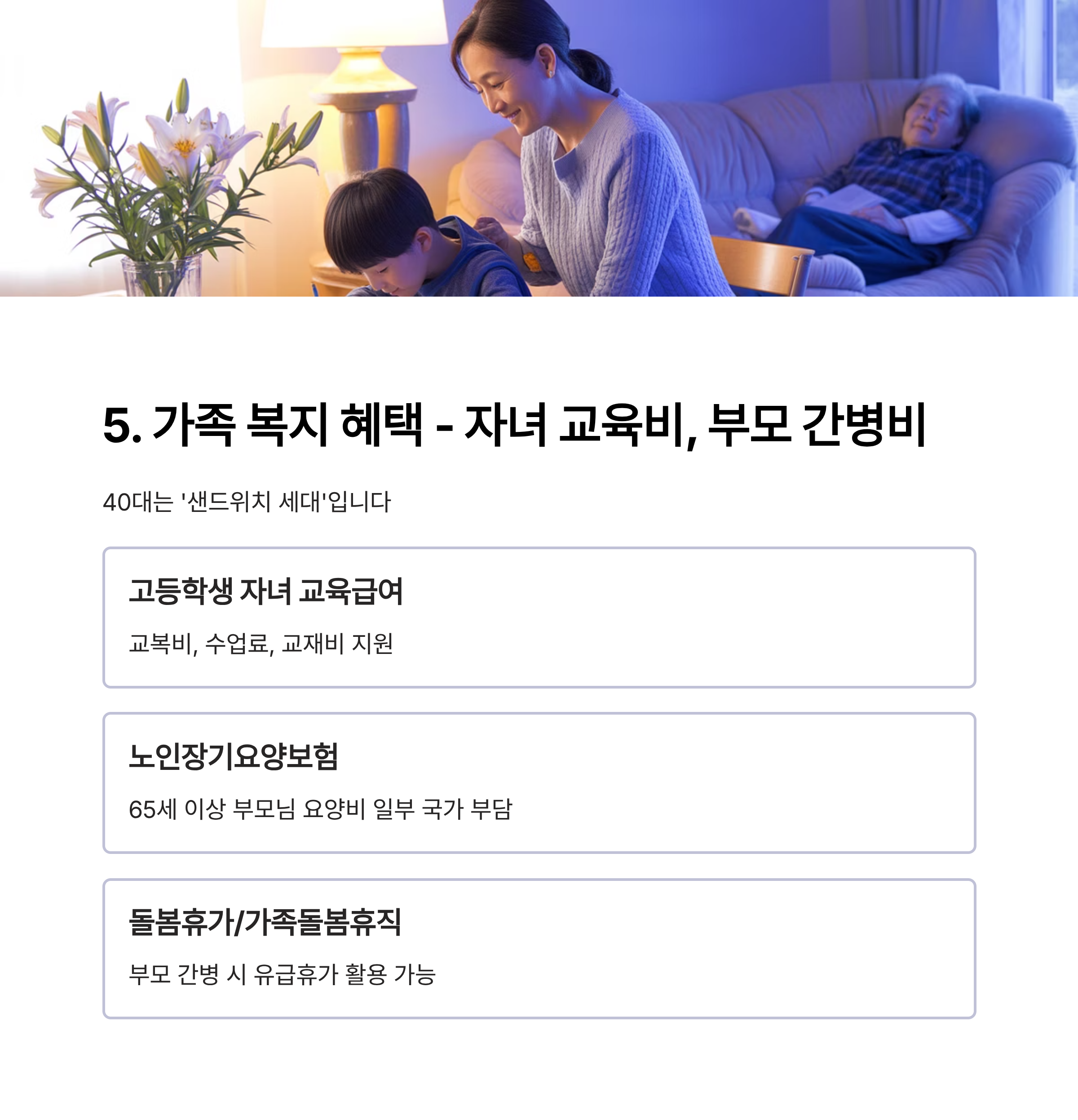 5. 가족 복지 혜택 - 자녀 교육비, 부모 간병비