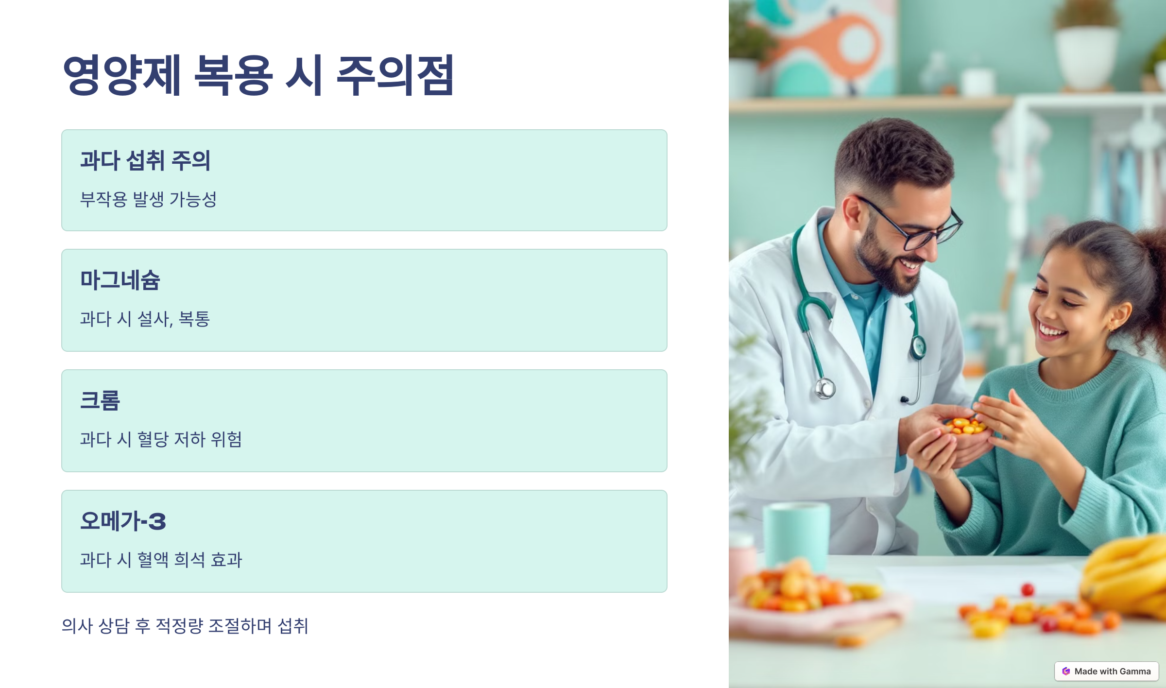 💡 영양제는 과다 섭취 시 부작용이 있을 수 있어요.