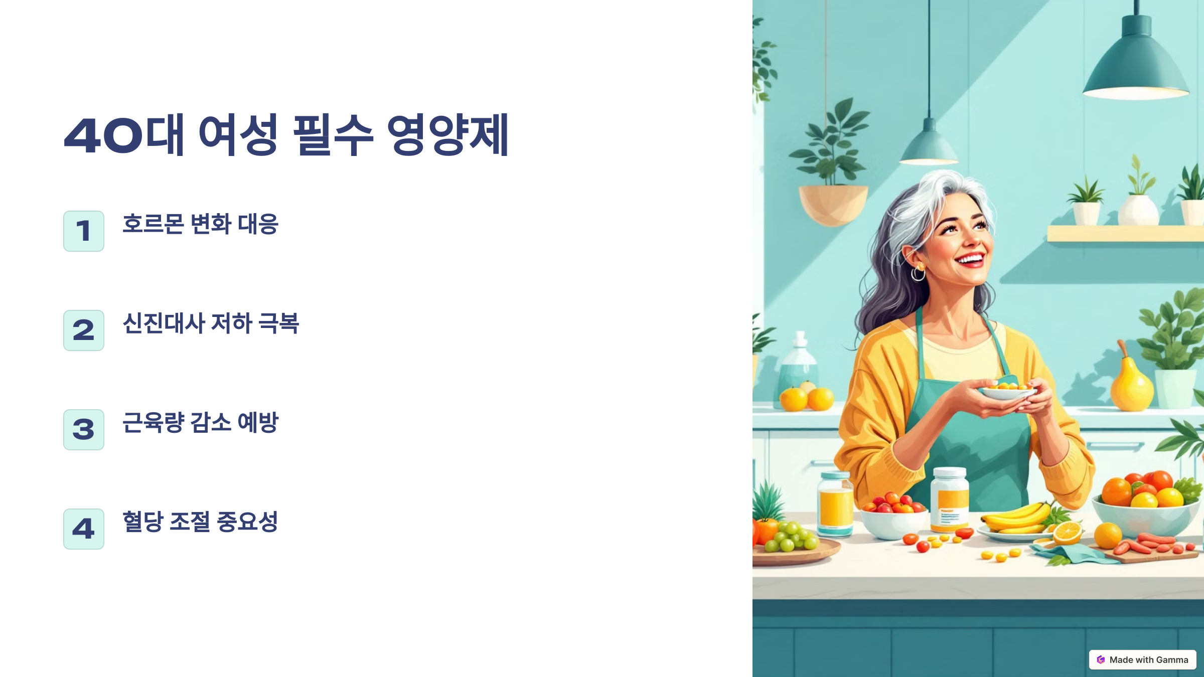 40대 여성은 호르몬 변화와 함께 신진대사 감소로 인해 혈당 관리뿐만 아니라 다양한 건강 문제에 신경 써야 해요. 🔍