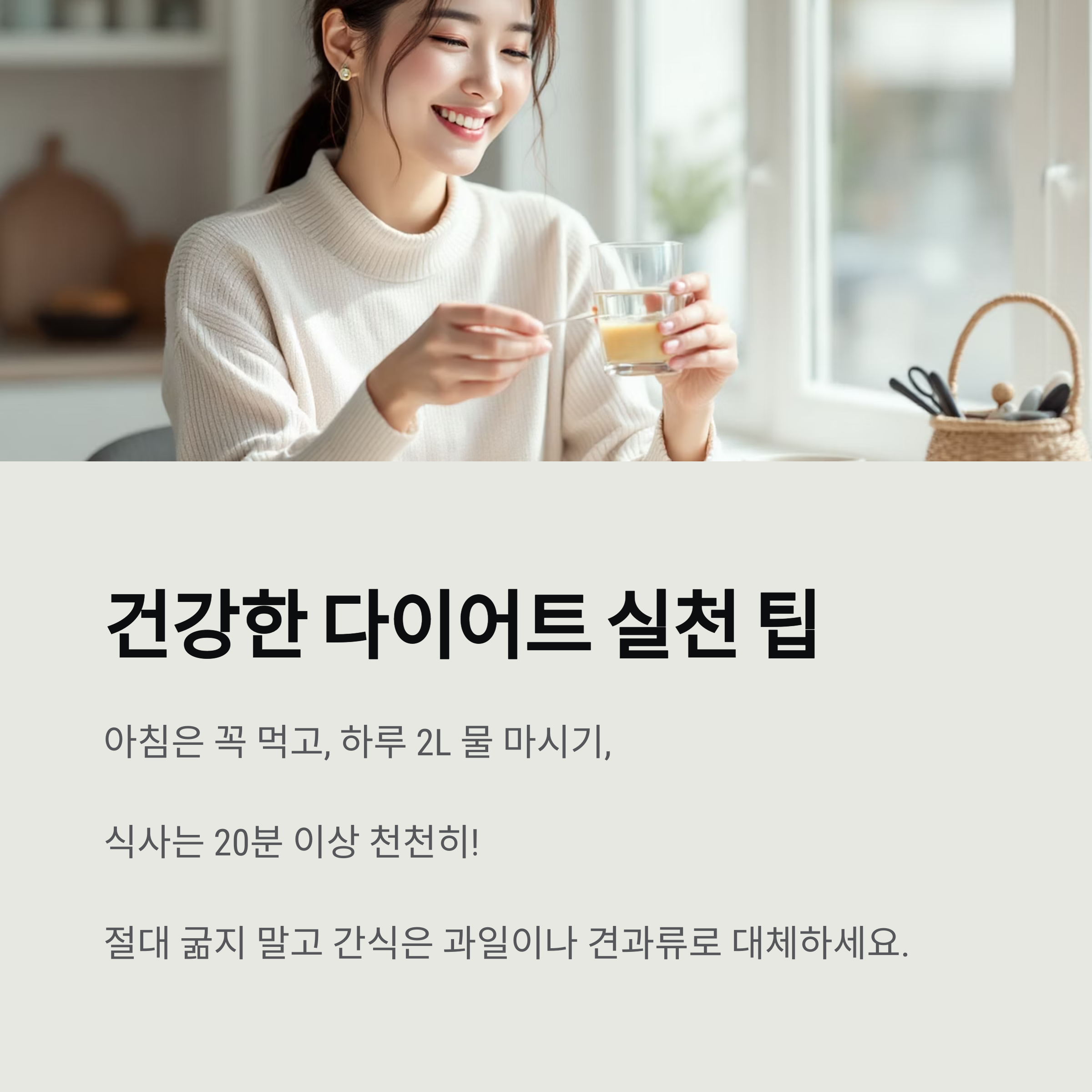 - 🚫 절대 굶지 말고, 간식은 과일/견과로 대체