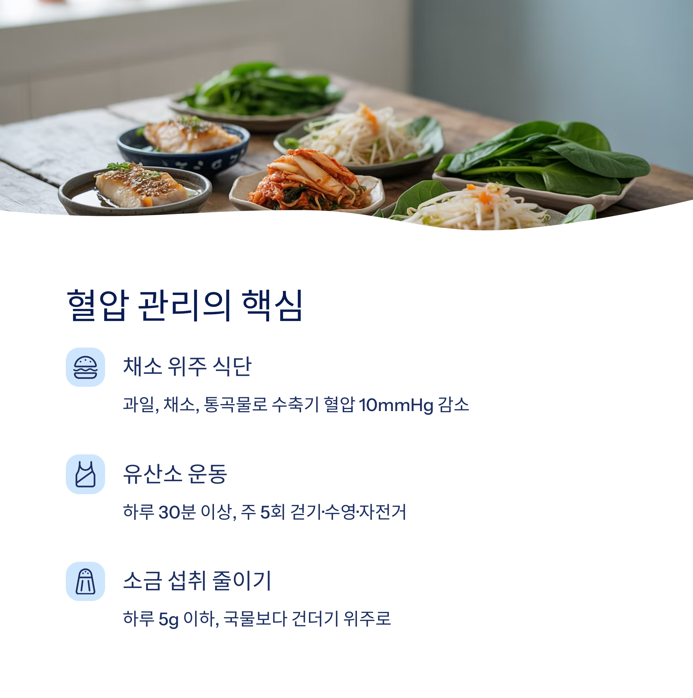40대 이후 혈압은 조용히 상승하는 경우가 많아 정기적인 관리가 중요합니다. 아래 방법들을 꾸준히 실천해보세요.