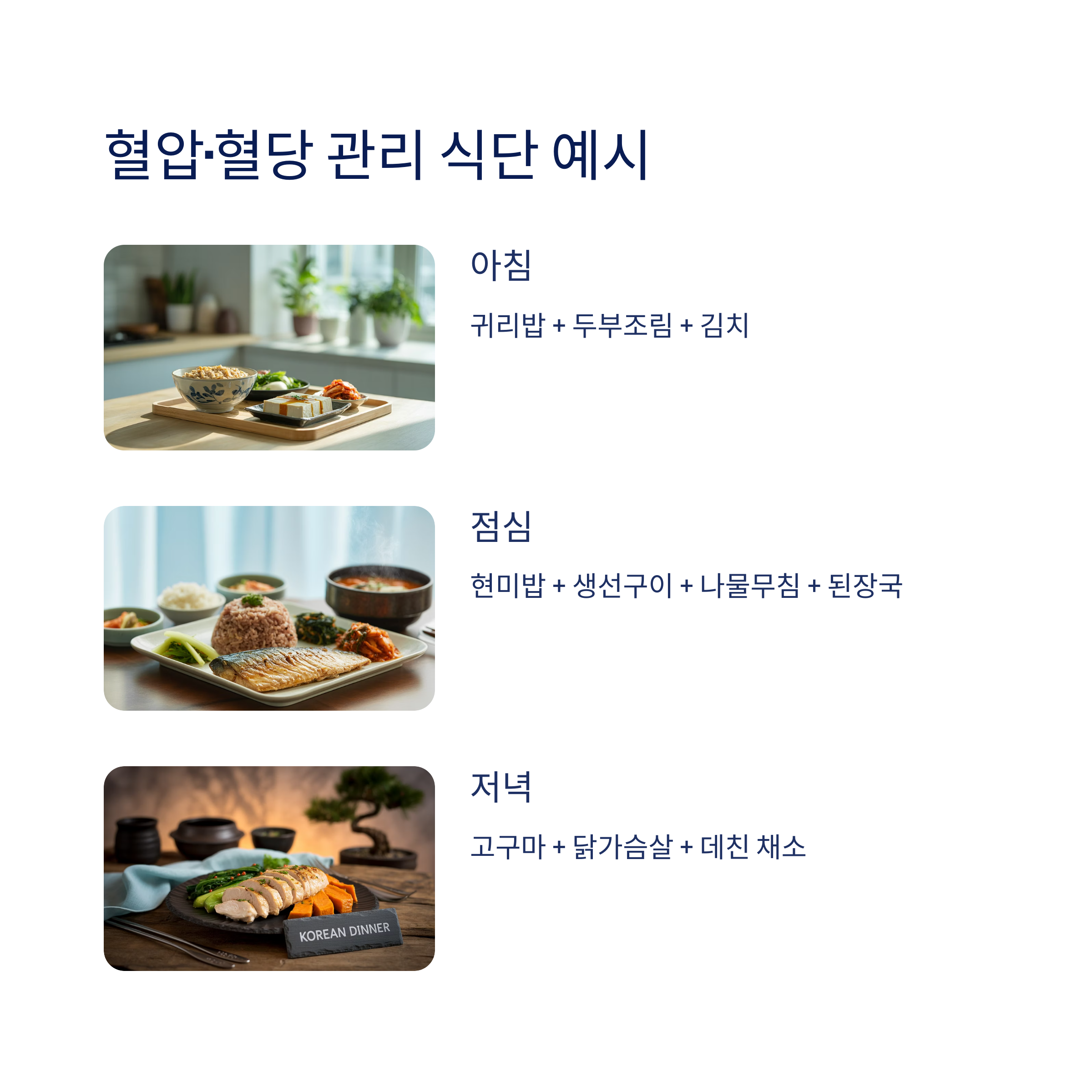 일상에서 바로 따라할 수 있는 식단을 소개합니다. 혈압·혈당 조절에 모두 효과적인 구성이에요.