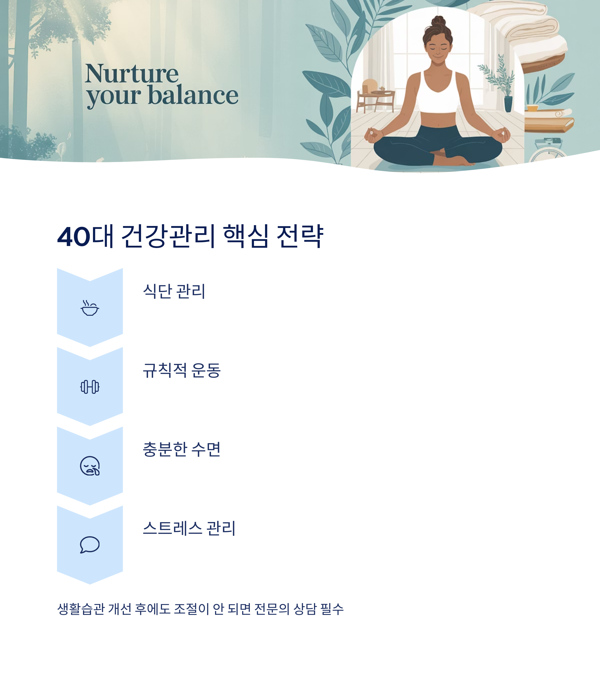 - 식단, 운동, 수면, 스트레스 관리가 최우선