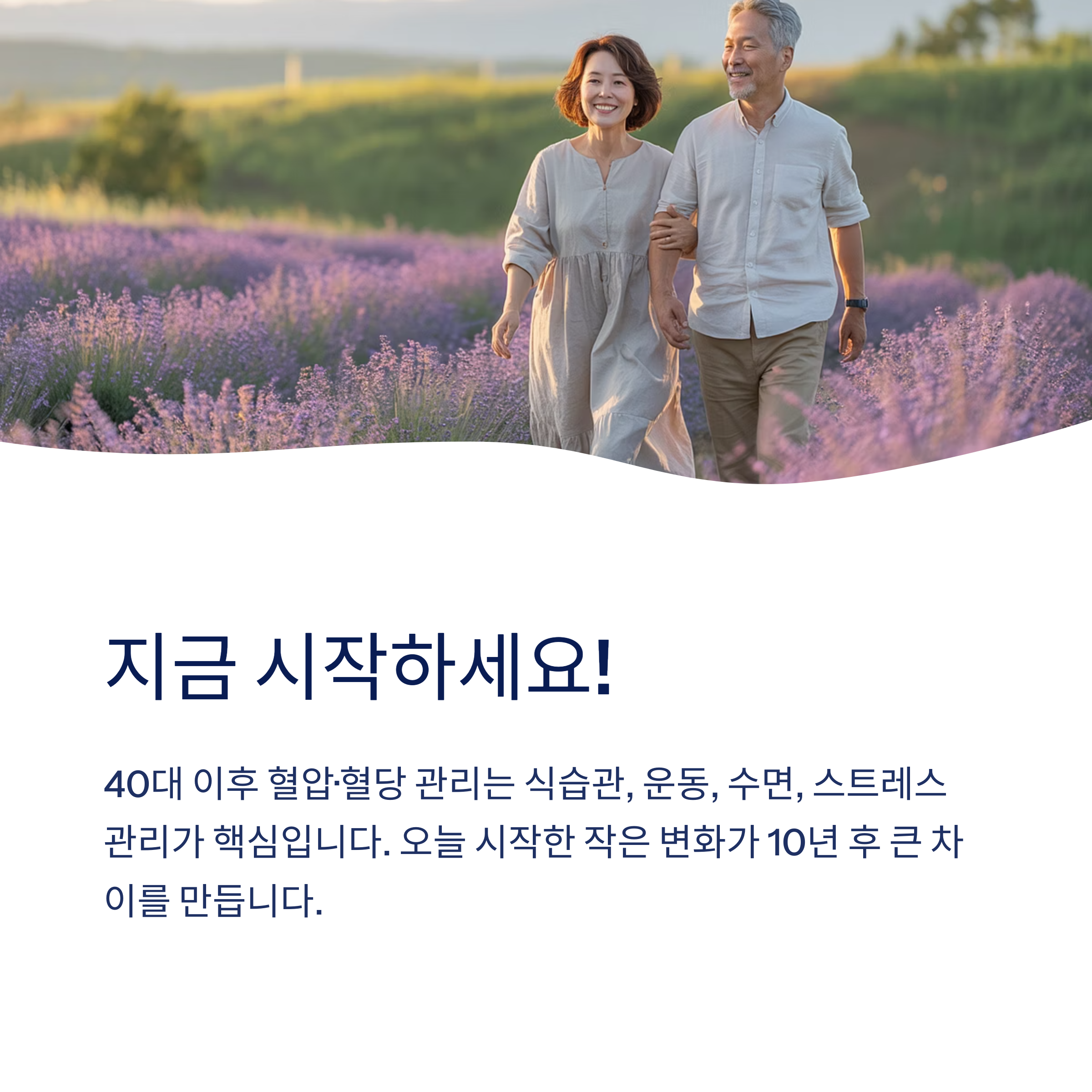 40대 이후 혈압·혈당 관리는 “식습관, 운동, 수면, 스트레스 관리”가 핵심입니다.
